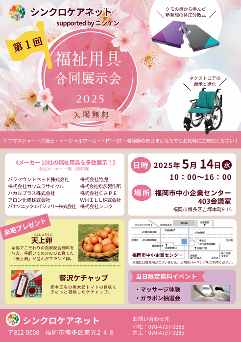 今月GW明けにケアマネさん向けのフェアも開催致します。